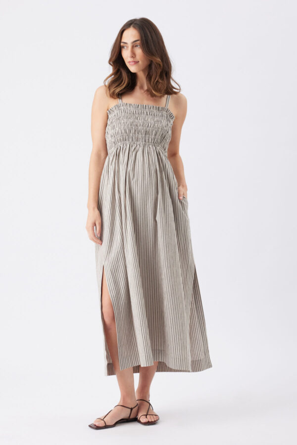 Leo Stripe Shirred Maternity Dress – Natural/Black