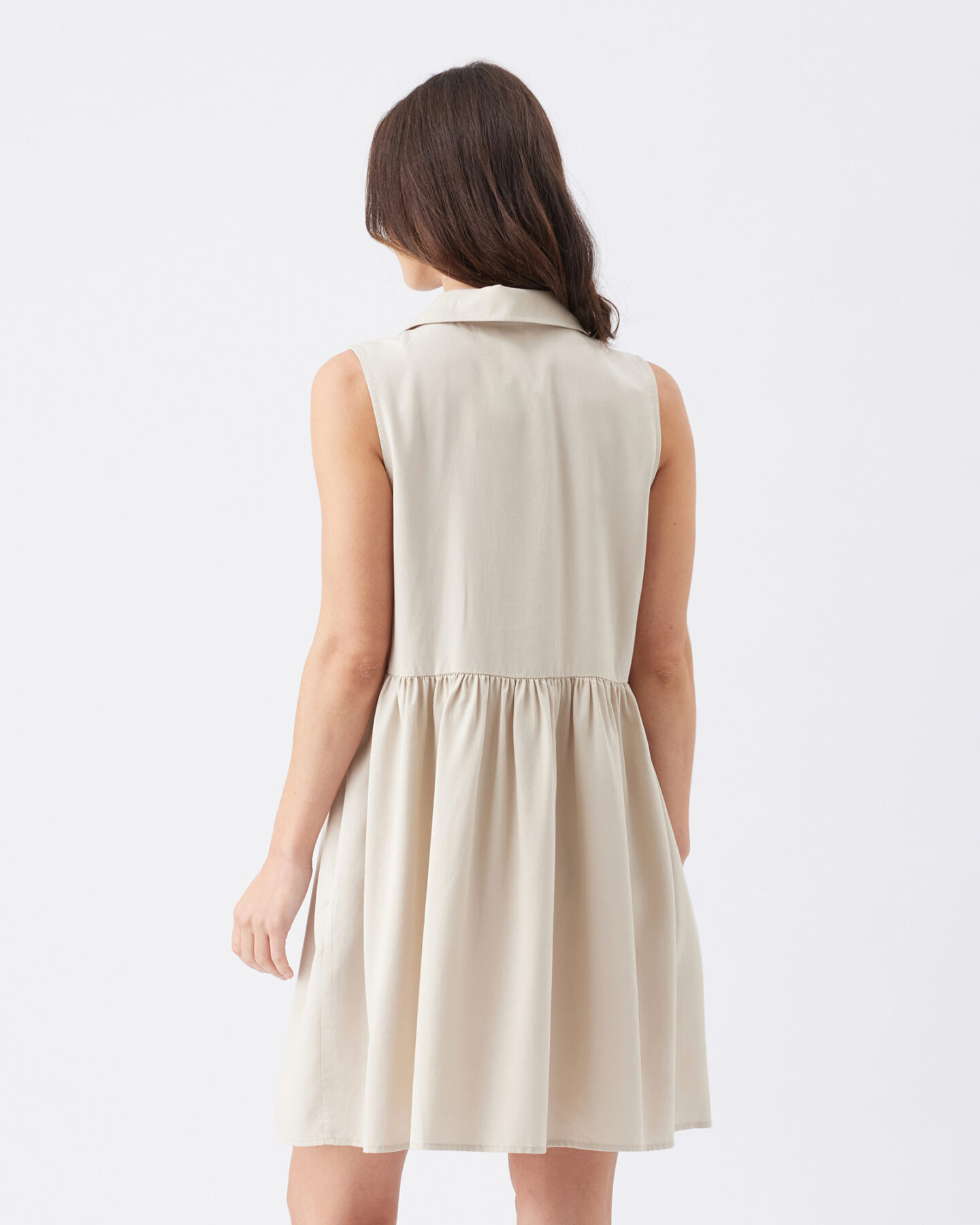 Embrace effortless summer style with the Chloe Maternity & Nursing Tencel Dress—a perfect harmony of comfort and sophistication. Crafted from 100% Lyocell, this sleeveless silhouette features a semi-fitted bodice that flows into a softly gathered skirt for a flattering, feminine shape. A smart collar elevates the neckline, while the button-up front offers easy nursing access. Thoughtful side seam pockets add a practical touch without compromising style. Lightweight and breathable, it’s the ideal go-to for warm days, casual outings, or laid-back weekends. Just add sandals for an effortlessly sun-kissed look.