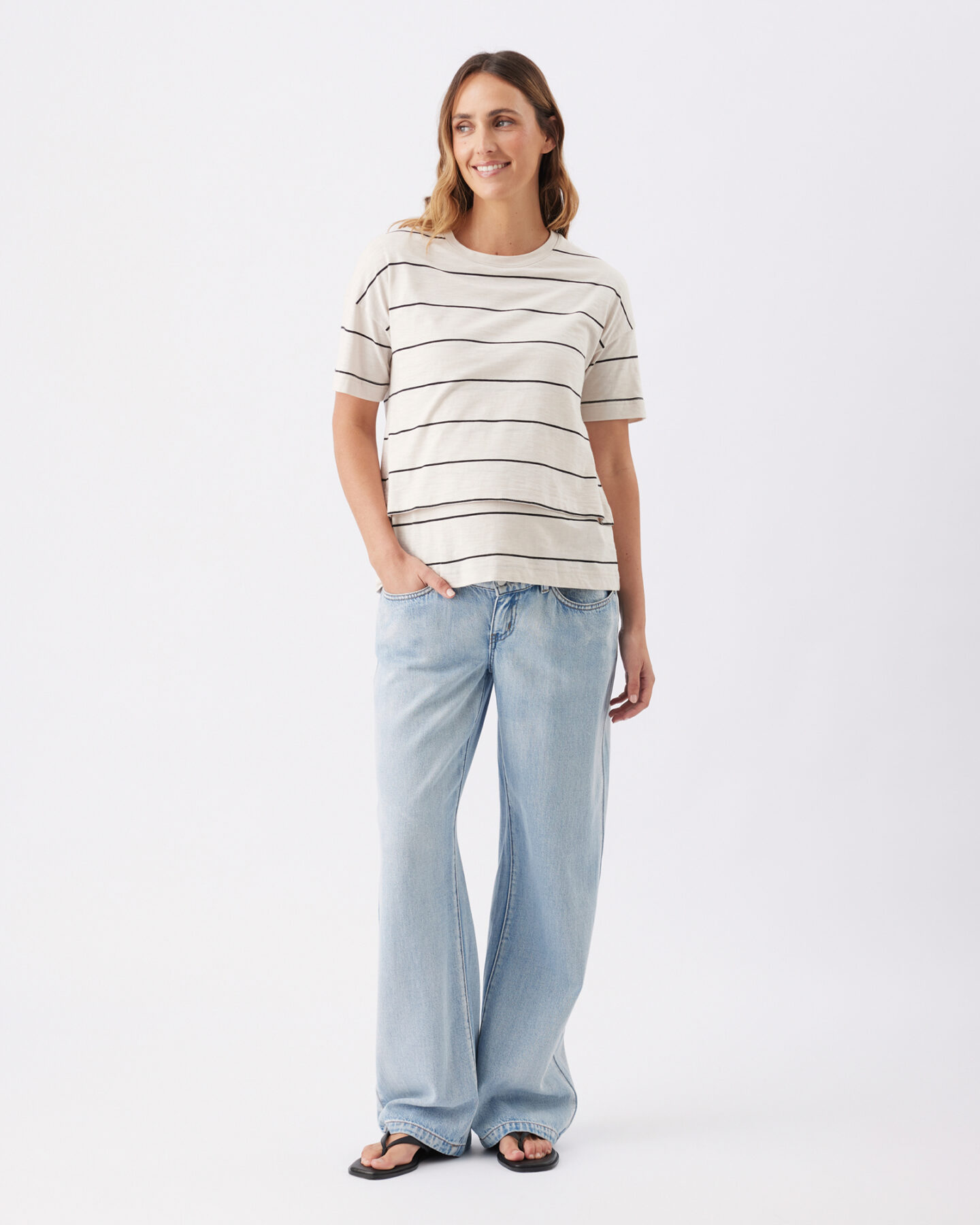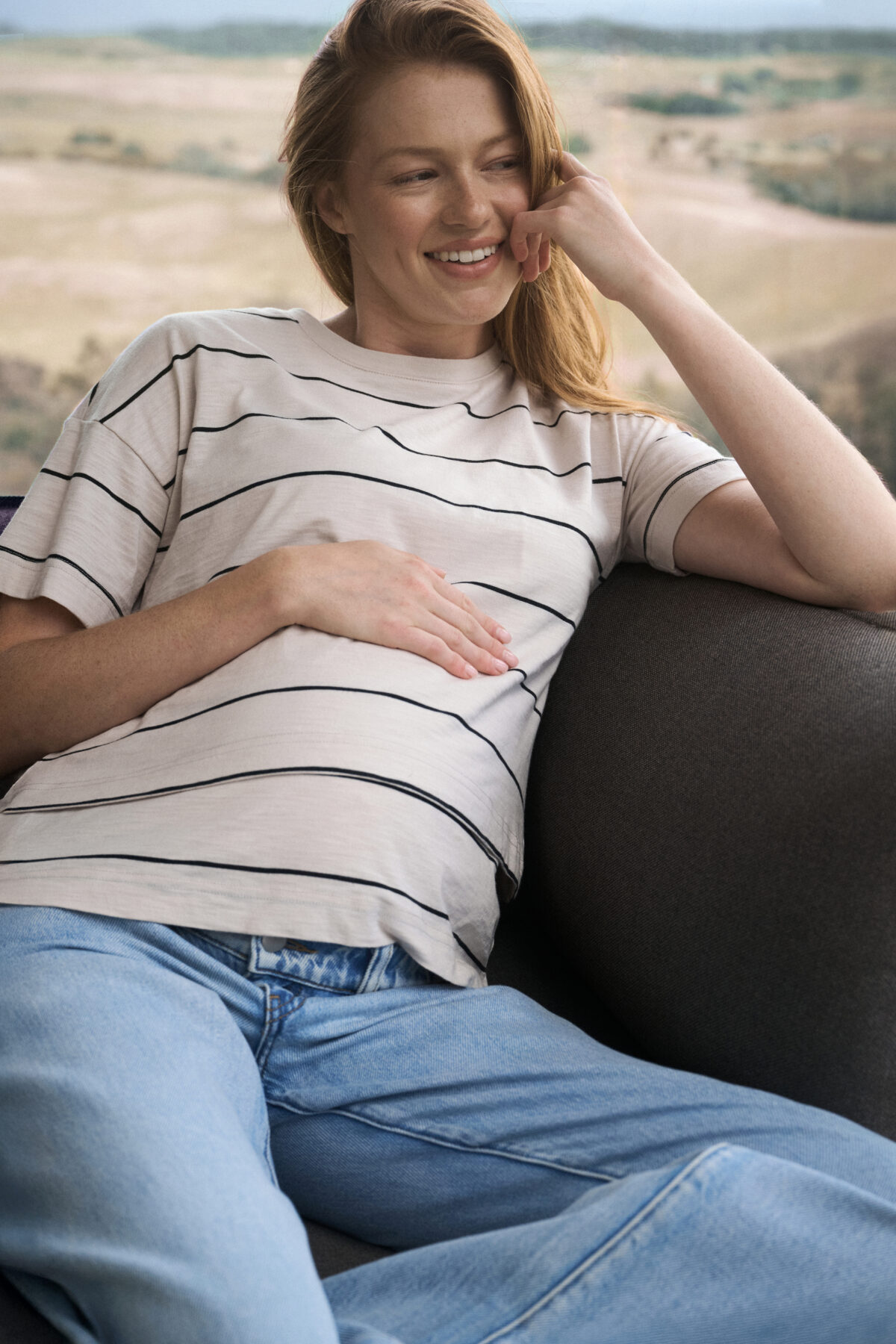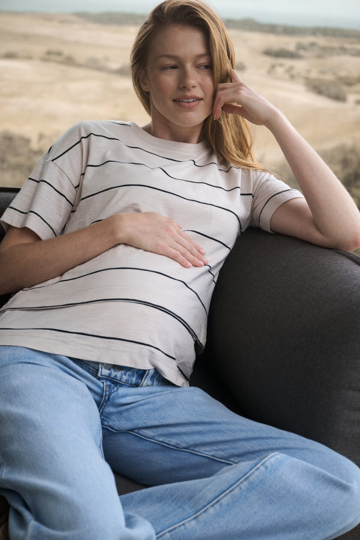 Meet your new favourite Maternity & Nursing tee, the Claudette. It’s the perfect oversized, crew-neck boxy tee for before and after pregnancy, and its relaxed fit made from a breathable cotton stretch knit jersey ensures comfort during all three trimesters – and beyond. Simplified nursing access guaranteed with our signature lift-up overlayer.