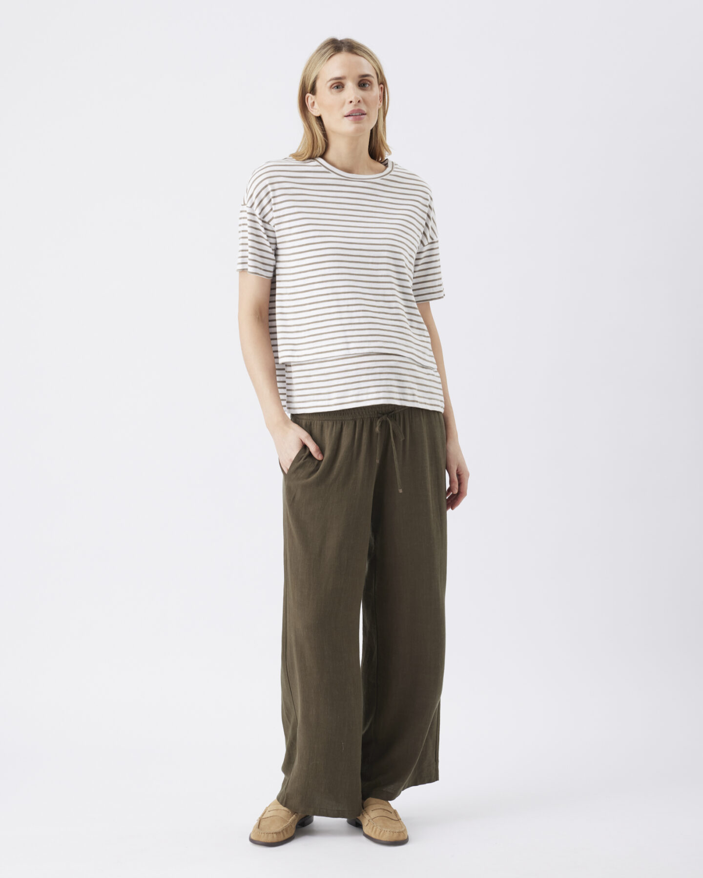 Want the look; model wears with our Ella Shirred Maternity Tunic in Khaki
