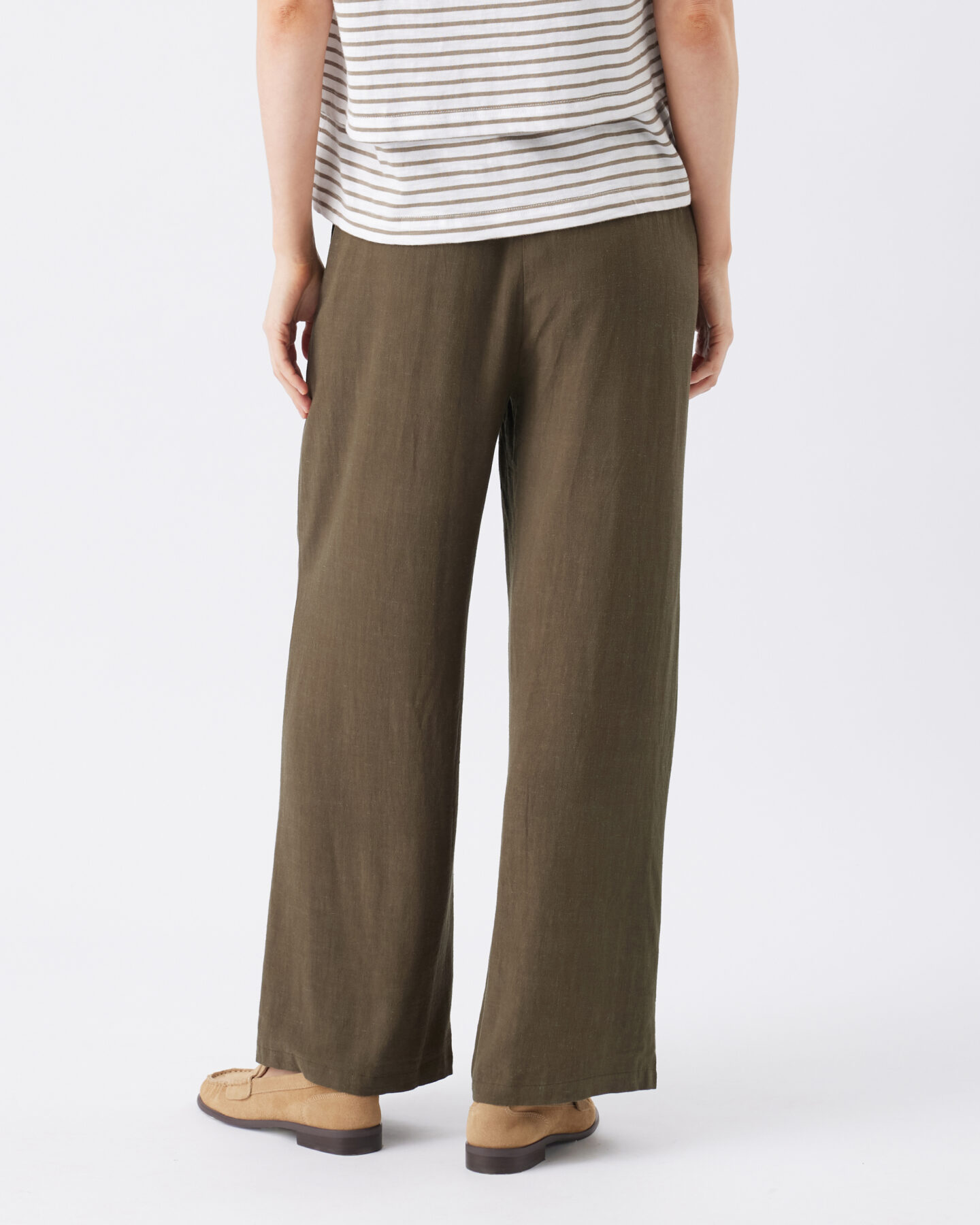 Features; Relaxed fit, woven Viscose Linen with slub, smocked waistband, wide leg