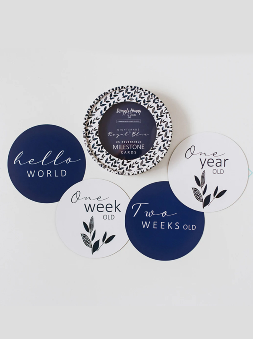 Capture your baby’s milestone moments and document their ‘firsts’ in photographs to treasure for a lifetime with our Nightshade & Royal Blue Reversible Milestone Cards.