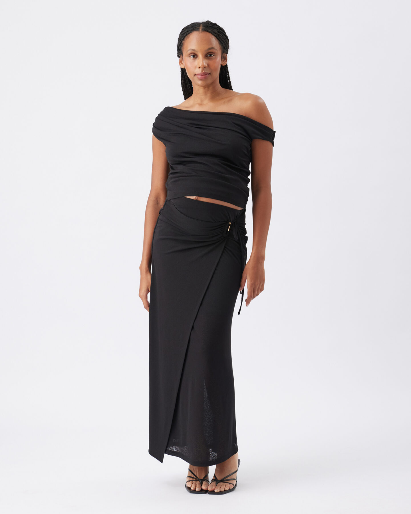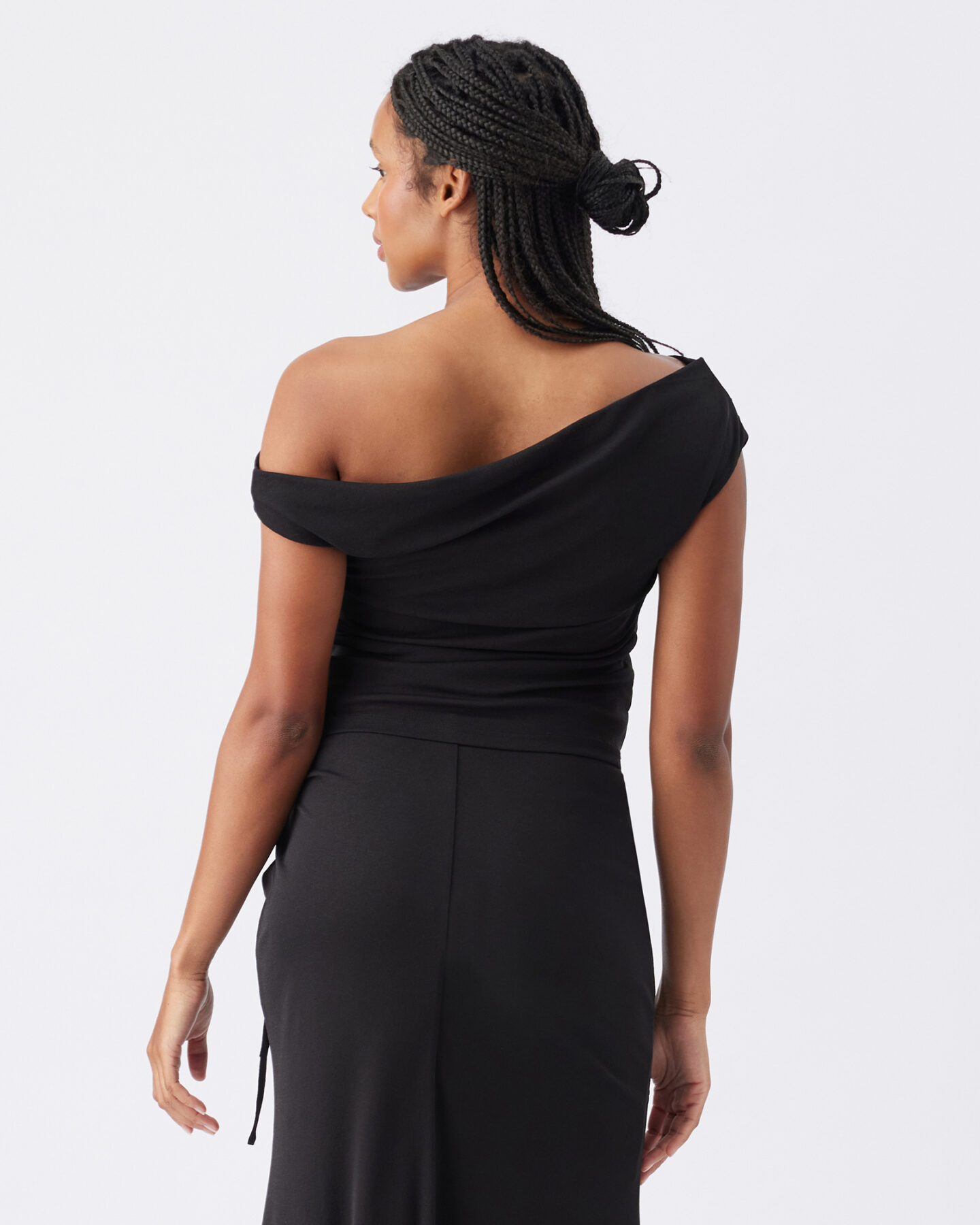Elevate your maternity style with the Rhi Off Shoulder Top. Crafted from soft, lightweight slub stretch jersey, it features a semi-fitted silhouette and an asymmetrical off-the-shoulder neckline. The lined bodice offers comfort and support, while the sleeveless design makes it perfect for warm days or nights. Whether paired with denim or the matching Rhi Mock Maternity Wrap Skirt, this top is your go-to for effortless, elevated style.